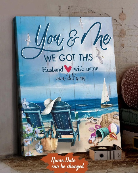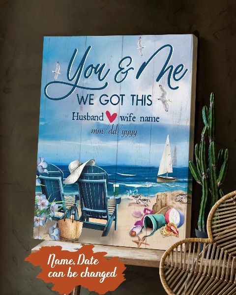 Personalized Canvas Wall Art Home Decor Anniversary Gift – On The Beach You And Me We Got This CA263