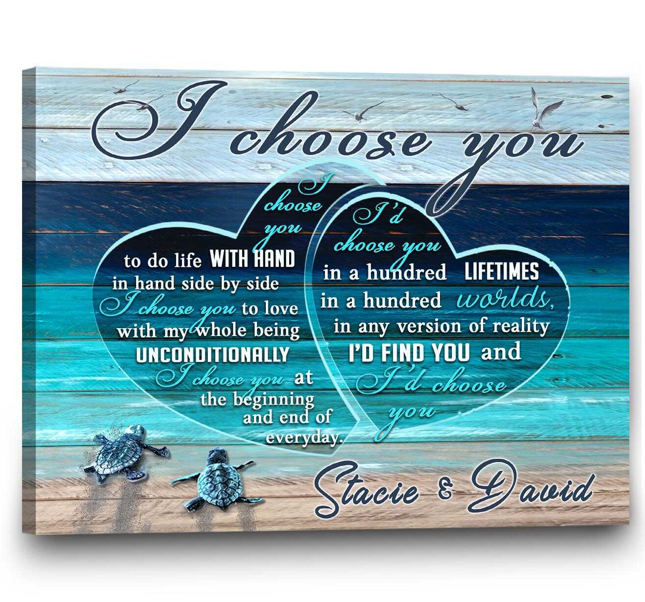 Personalized Canvas Wall Art Home Decor Anniversary Wedding Gift Sea Turtle I Choose You CA233